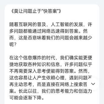这不,数码大V 小白测评 就将今年高考新课标I卷的作文题发给各厂商的AI,让它们根据题目也写一篇作文。图1、图2、图3分别是华为小艺、OPPO小布和vivo蓝心小V写的作文,各位评卷老师都来看看,这些作文能得多少分?
